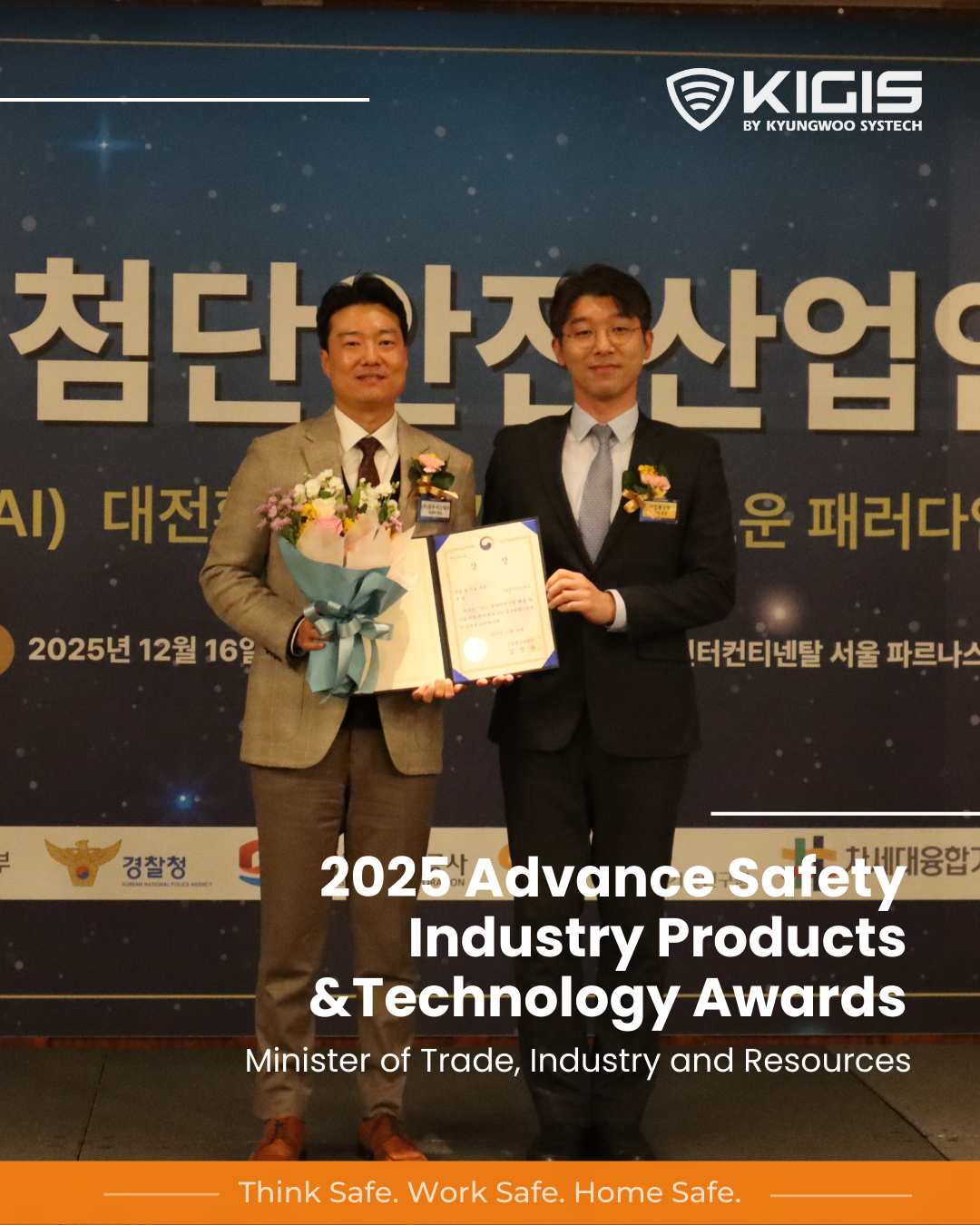 KIGIS® Safety Technology has been honored with the Minister of Trade, Industry, and Resources Award at the 2025 Advance Safety Industry Product & Technology Awards!
